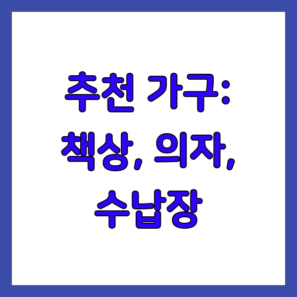 추천 가구: 책상, 의자, 수납장