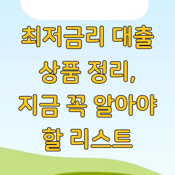 금융 상품을 선택할 때 가장 중요한 요소 중 하나는 금리 입니다. 최저금리 대출 상품을 선택하는 것은 재정 상황을 개선하고 미래를 준비하는 데 큰 도움이 될 수 있습니다. 다양한 대출 상품을 비교하고 신중하게 선택하는 것이 필요합니다. 금리 비교 방법을 숙지하고, 대출 신청 전 꼭 확인해야 할 사항을 놓치지 말아야 합니다. 이 글에서는 최저금리 대출 상품에 대한 중요한 정보 를 제공하여, 독자들이 현명한 금융 결정을 내릴 수 있도록 도와드리겠습니다.